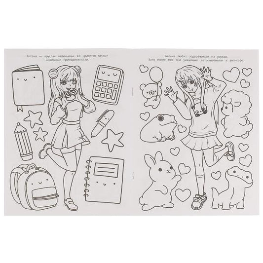 Весёлые подружки. Крутой мир Аниме. Чудо раскраска. 214х290мм. Скрепка. 8 стр. Умка в кор.50шт