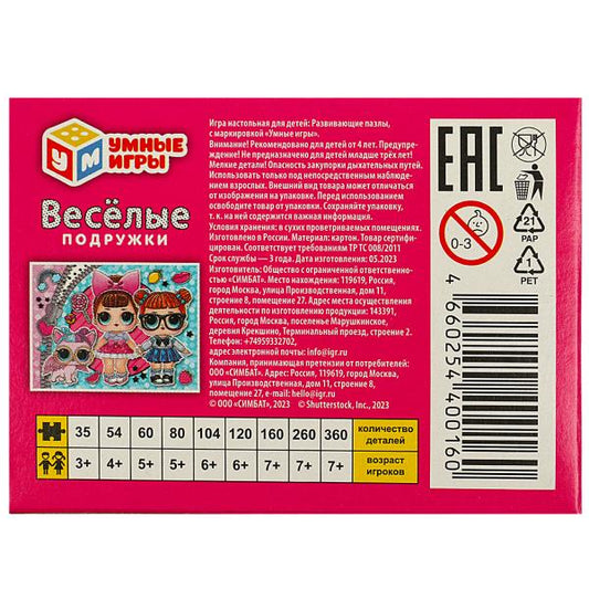 Веселые подружки. Пазлы классические в коробке. Пазл 160 детали. Умные игры в кор.12шт