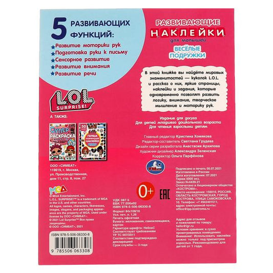 ВЕСЁЛЫЕ ПОДРУЖКИ. Развивающие наклейки для малышей. Лол. 200х260 мм.,8 стр. Умка в кор.50шт