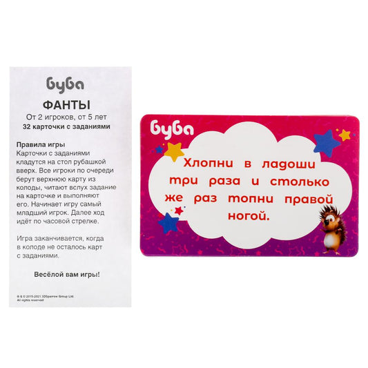 Веселые фанты для детей. Буба Коробка с европодвесом, 32 карточки с заданиями Умные игры в кор.150шт