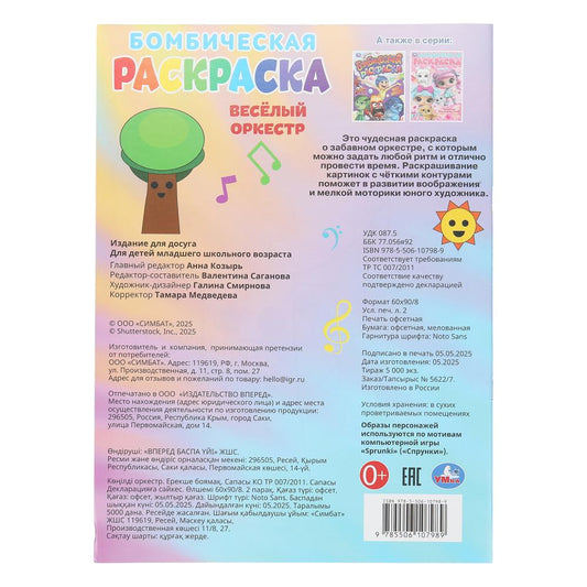 Весёлый оркестр. Бомбическая раскраска. 214х290 мм. Скрепка. 16 стр. Умка в кор.50шт