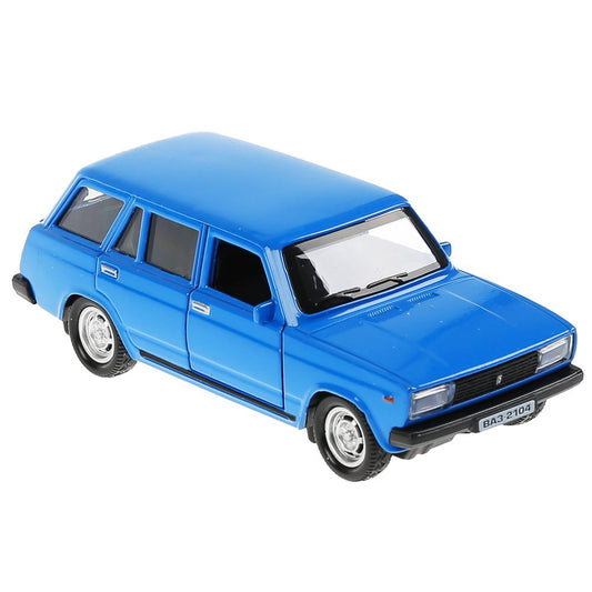 2104-12-BU299588 Машина металл ВАЗ-2104 ЖИГУЛИ длина 12 см, двери, багаж, инерц, синий, кор. Техно