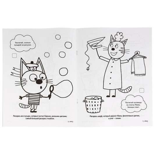 224513 "УМКА". ВЕСЕЛЫЕ ПРИКЛЮЧЕНИЯ. ТРИ КОТА (ПЕРВАЯ РАСКРАСКА А4) ФОРМАТ: 214Х290ММ. 16 СТР. в к