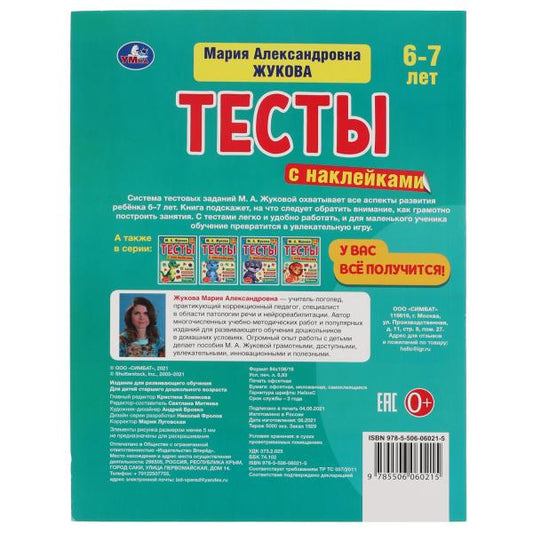 978-5-506-06021-5315824 Тесты с наклейками 6-7 лет. М.А. Жукова. Тесты с наклейками. 195х255 мм. 64