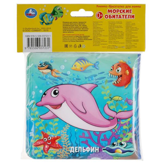 "УМКА". МОРСКИЕ ЖИВОТНЫЕ. КНИГА-ПИЩАЛКА ДЛЯ ВАННЫ, С ЗАКЛАДКАМИ. ФОРМАТ: 14Х14СМ. 8 СТР. в кор.60шт