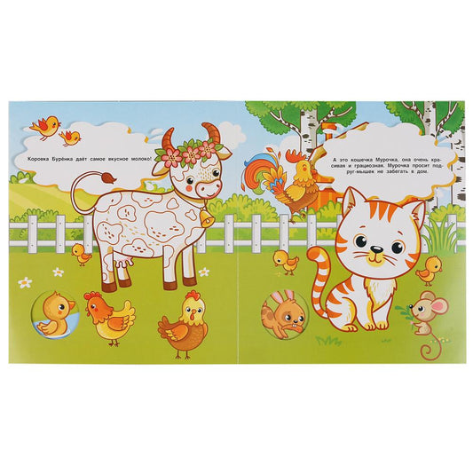 "УМКА". НА ФЕРМЕ. РАСКРАСКА С ОКОШКАМИ. 197Х220 ММ., 10 СТР. БУМАГА КАРТОН в кор.50шт