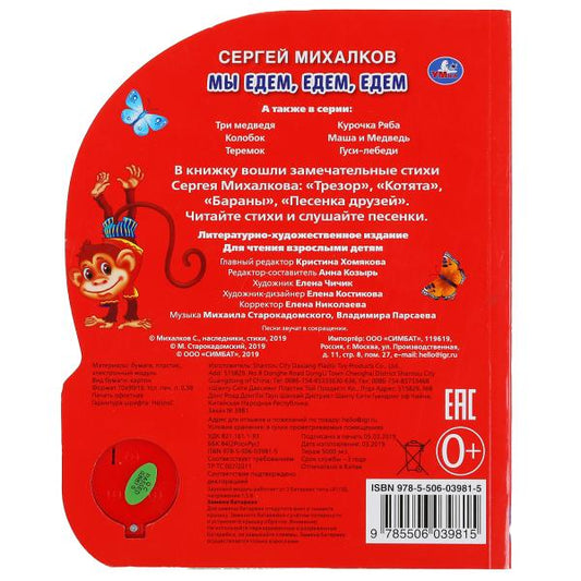 "Умка". Мы едем, едем, едем. С.Михалков (1 кн. 3 пес.). Формат: 150х185мм. 8 карт. стр. в кор.24шт