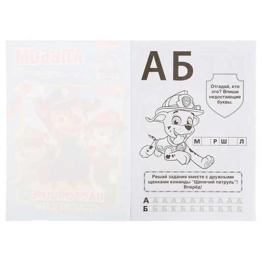 "УМКА". НАСТОЯЩИЕ СПАСАТЕЛИ. ЩЕНЯЧИЙ ПАТРУЛЬ (АЛЬБОМ ДЛЯ ТВОРЧЕСТВА А5) 145Х210ММ. 16 СТР в кор.50шт