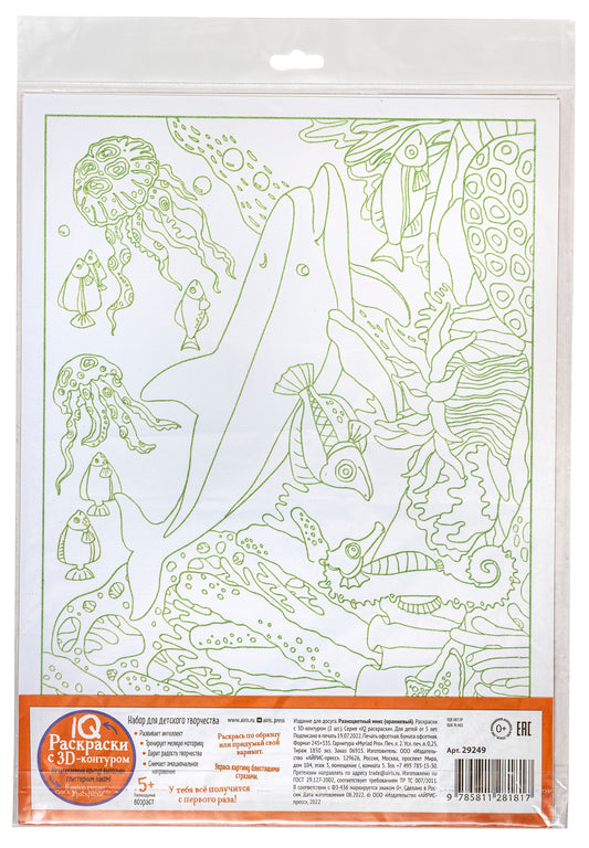 IQ Раскраски 3D контур. Набор 6 макси Разноцветный микс