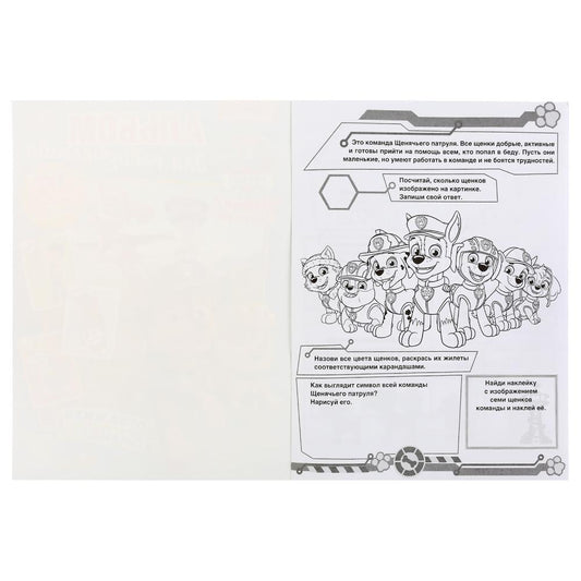"УМКА". ОТВАЖНАЯ КОМАНДА. ЩЕНЯЧИЙ ПАТРУЛЬ (НАКЛЕЙ И РАСКРАСЬ А4) ФОРМАТ 214Х290ММ 16 СТР. в кор.50шт