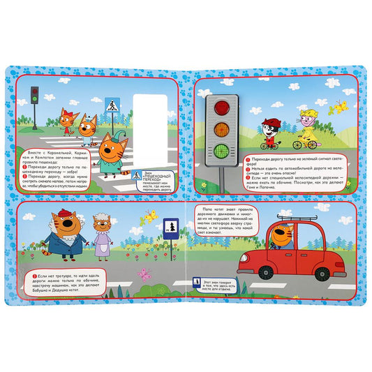 "Умка". Светофор. Три кота (три кнопки-светофор, свет+звук). 230Х302мм. 10 карт. стр. в кор.24шт