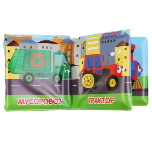 "Умка". Синий трактор. Книжка-раскладушка для ванной с пищалкой. 8х8 см. Объём: 14 стр. в кор.60шт