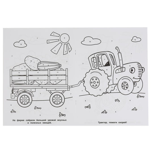 "УМКА". СИНИЙ ТРАКТОР (РАСКРАСКА ПО НОМЕРАМ А4). ФОРМАТ: 214Х290 ММ. ОБЪЕМ: 16 СТР. в кор.50шт