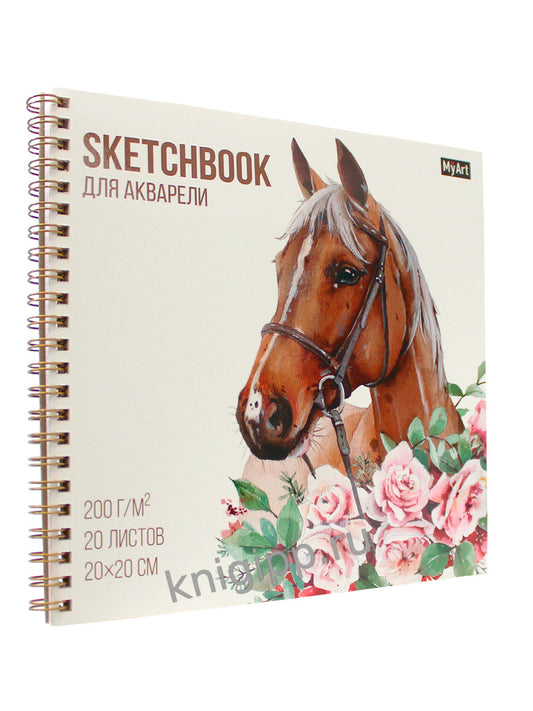 MyArt. СКЕТЧБУК для АКВАРЕЛИ на гребне. ЛОШАДЬ В ЦВЕТАХ