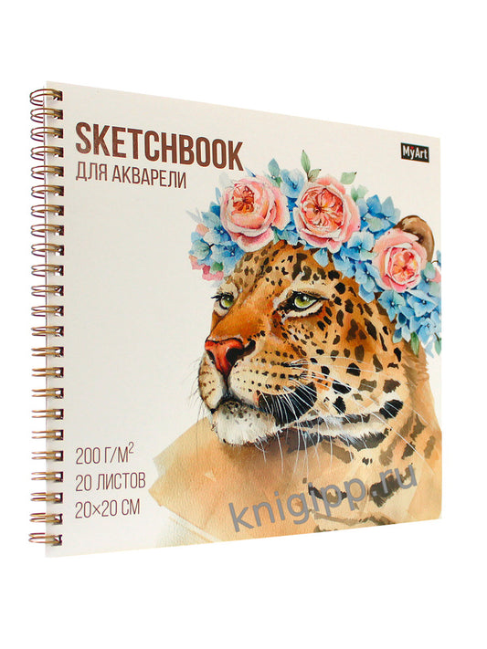 MyArt. СКЕТЧБУК для АКВАРЕЛИ на гребне. ЛЕОПАРД В ВЕНКЕ