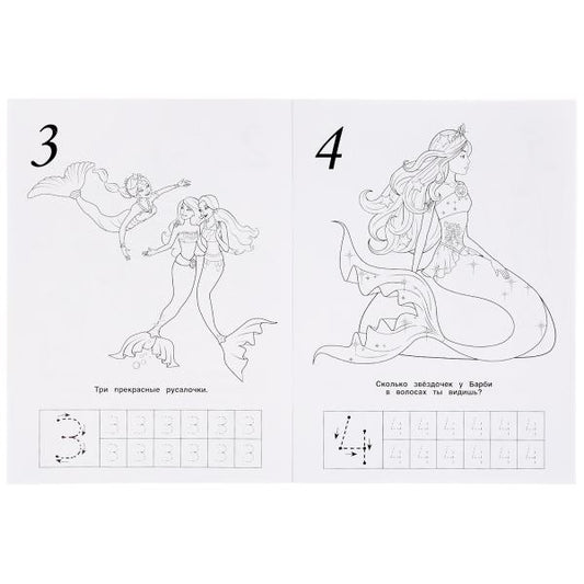 "УМКА". УЧИМ ЦИФРЫ. БАРБИ (ПЕРВАЯ РАСКРАСКА А4 МУЛЬТ) ФОРМАТ: 214Х290 ММ. ОБЪЕМ: 16 СТР. в кор.50шт