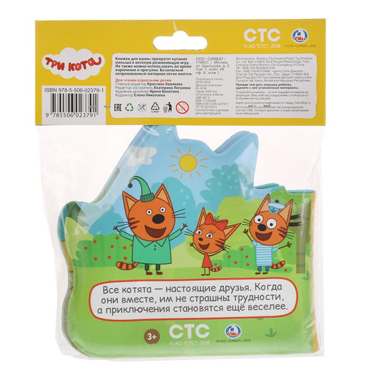 "Умка". Три кота. Лучшие друзья. Книга-пищалка для ванны, в виде героя. Формат: 14х14см в кор.60шт