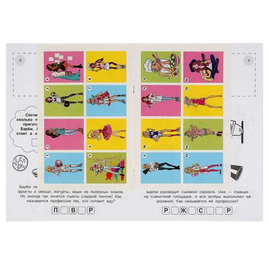 "УМКА". УЧИМ ПРОФЕССИИ. ТЫ МОЖЕШЬ БЫТЬ КЕМ ЗАХОЧЕШЬ. БАРБИ (НАКЛЕЙ И РАСКРАСЬ А4) 214Х290ММв кор50шт