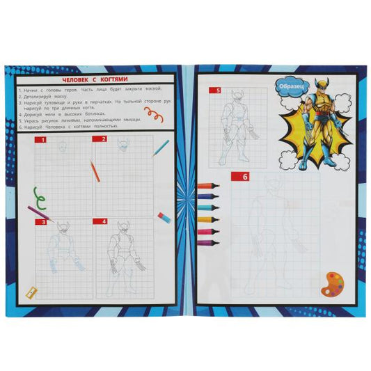 SUPER Герои. Учусь рисовать Рисуем шаг за шагом. 210х290мм. Скрепка. 16 стр. Умка в кор.50шт