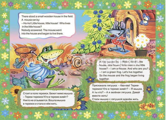 The wooden house. Теремок.Книжки для малышей на английском языке с переводом и развивающими заданиями. 16 стр.
