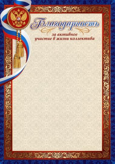 Благодарность за активное участие в жизни коллектива. (Формат А4, бумага мелованная пл.250)