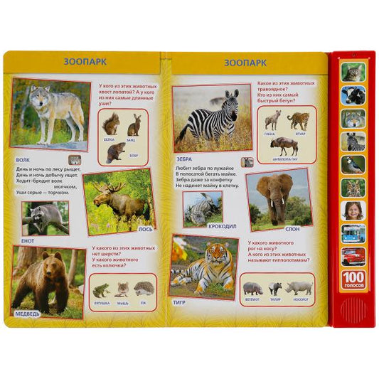100 голосов животных (10 зв.кнопок, 100 звуков) 233х302мм 10 стр Умка в кор.24шт