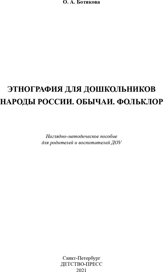 Этнография для дошкольников. Народы России. Обычаи. Фольклор: наглядно-методическое пособие для родителей и воспитателей ДОУ. ФГОС.