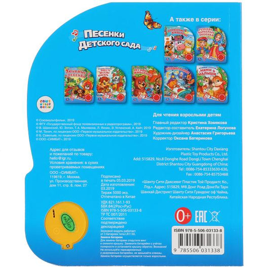 Умка. Союзмультфильм.Песенки для детского сада (1 кн. 3 песенки). Формат: 152х185, 8 стр. в кор.24шт