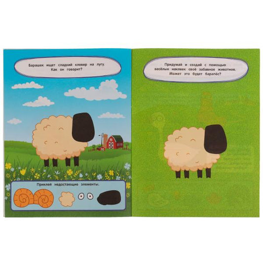 Весёлая ферма. Смешные мордашки. СИНИЙ ТРАКТОР. 200х260мм. 8.стр. + 75 наклеек. Умка в кор.50шт