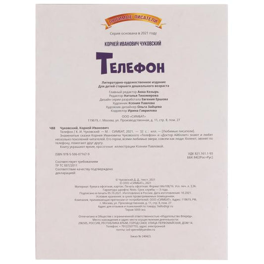 Телефон. К.Чуковский. Любимые писатели. 197х260 мм, скрепка, 32 стр. Умка в кор.40шт