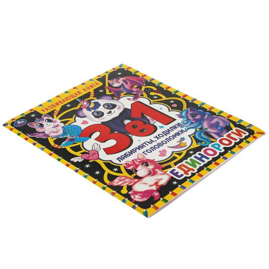 Единороги. Развивающая книга 3 в 1. Лабиринты, ходилки, головоломки. 32 стр. Умка в кор.30шт