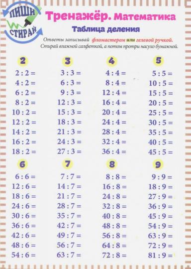 Справочные материалы: Тренажёр. Математика. Таблица деления (А5)