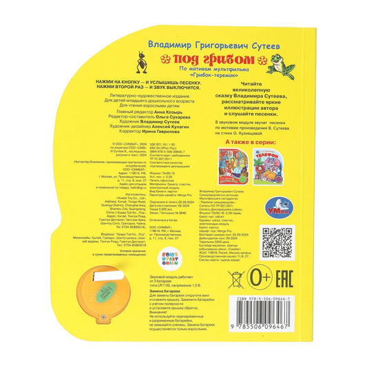 Под грибом. сутеев в. СОЮЗМУЛЬТФИЛЬМ (1 кн. 3 пес.) 152х185мм, 8стр Умка в кор.24шт