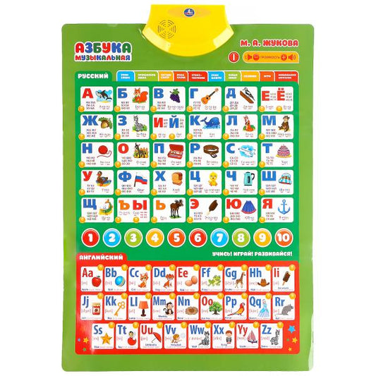 Говорящий плакат, русско-английская азбука М.А.Жукова,300+стихов, 100+вопросов, игр. Умка в кор.48шт