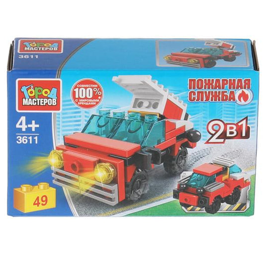Конструктор ПОЖАРНАЯ МАШИНА 2в1, 49 дет. Город мастеров в кор.80шт