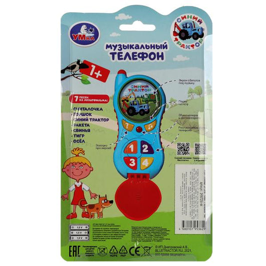 Музыкальный телефон СИНИЙ ТРАКТОР 35 песен,звуков,загадок.свет.блист.бат. Умка в кор.2*72шт