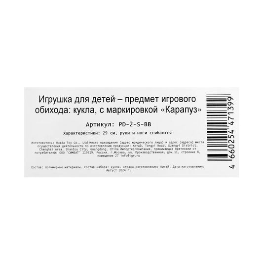 Кукла 29см кукла, руки и ноги сгиб., акс, кор КАРАПУЗ в кор.24шт