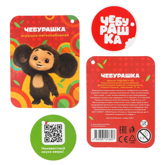 Игрушка мягкая Чебурашка чебурашка 17см, озвуч. "МУЛЬТИ-ПУЛЬТИ" в кор.24шт