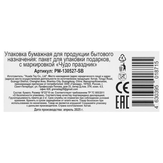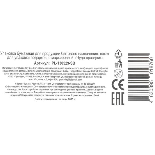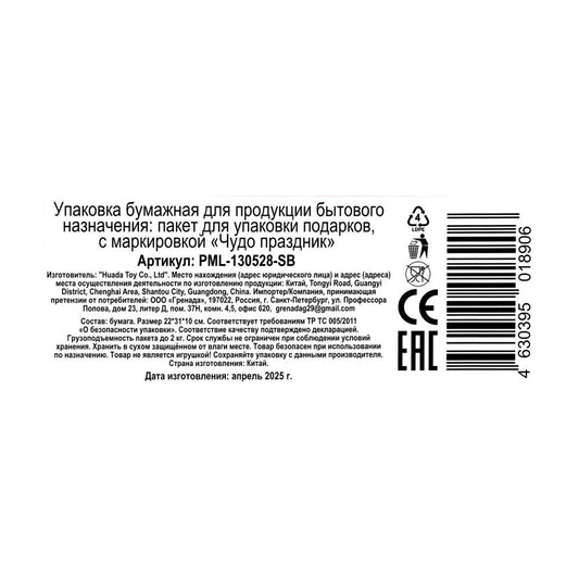 Пакет подарочный глянцевый ml,желтая губка,140 гр/м2 ЧУДО ПРАЗДНИК в кор.10*12шт