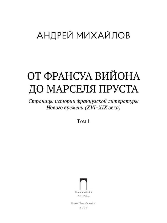 От Франсуа Вийона до Марселя Пруста. Страницы истории французской литературы Нового времени (XVI–XIX века). Т. 1