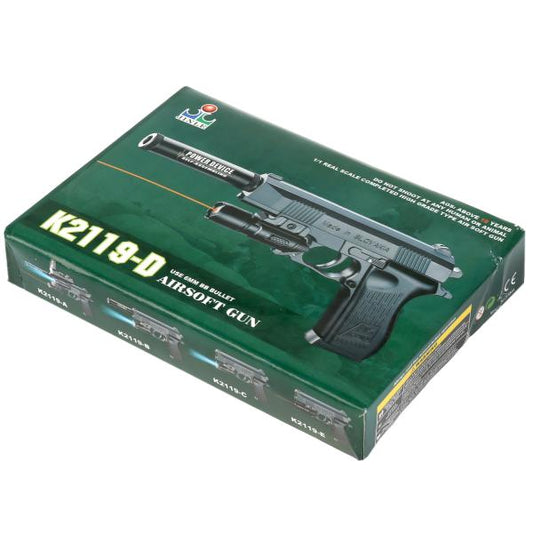 Пистолет (п) с лазер. прицелом, с глушителем, с пульками K2119-D в кор. в кор.120шт
