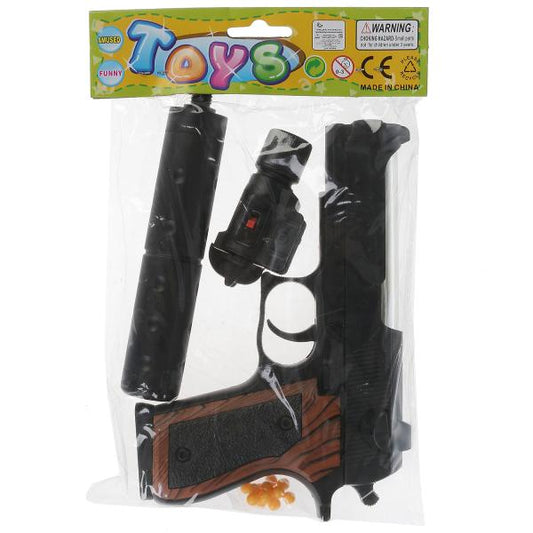 Пистолет (п) с глушителем, с фонариком, с пульками K2119 в пак. в кор.2*72шт