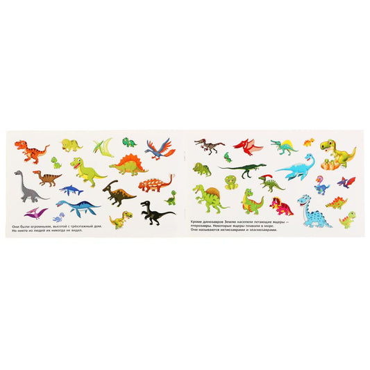 "УМКА". ДИНОЗАВРЫ (АЛЬБОМ 100 НАКЛЕЕК МАЛЫЙ ФОРМАТ). ФОРМАТ: 260Х155ММ. 4 CT. НАКЛЕЕК в кор.50шт