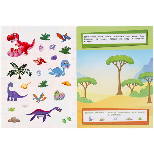 "УМКА". ДИНОЗАВРЫ. ДОПОЛНИ КАРТИНКУ, 35 НАКЛЕЕК. ФОРМАТ: 160Х215 ММ. ОБЪЕМ: 8 СТР. en cor.50шт