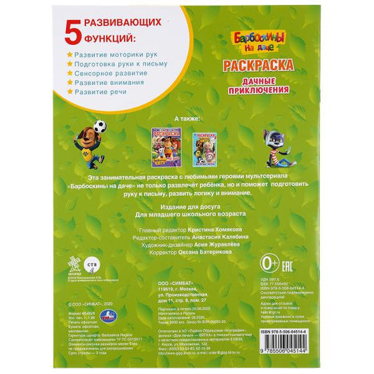"УМКА". ДАЧНЫЕ ПРИКЛЮЧЕНИЯ. БАРБОСКИНЫ НА ДАЧЕ (ПЕРВАЯ РАСКРАСКА А4) 214Х290 ММ. 16 CT. en cor.50шт