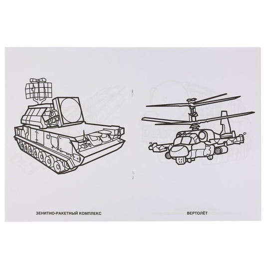 "УМКА". ВОЕННАЯ ТЕХНИКА. ПЕРВАЯ РАСКРАСКА МАЛЫЙ ФОРМАТ. ФОРМАТ: 145Х210 ММ. ОБЪЕМ: 16СТР в кор.50шт