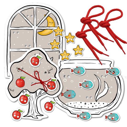 «Веселые шнурочки». Завяжи и сосчитай яблоки, рыбок, звездочки