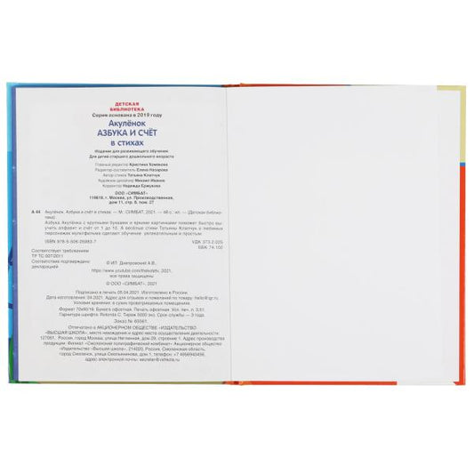 Азбука и счет в стихах. Akoulénok. Bibliothèque nationale. 165х215мм. 48ст. тв.переплет. Умка в кор.30шт