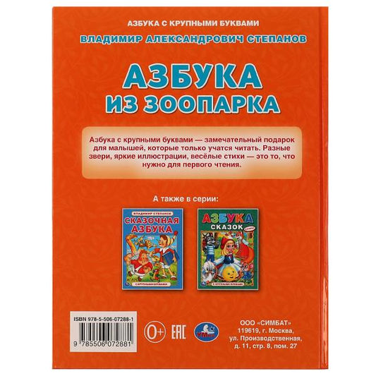Азбука из зоопарка. Азбука с крупными буквами. В. A. Stepanov. 197х255 mm. 32 pièces. Ouais. dans le cor.15шт