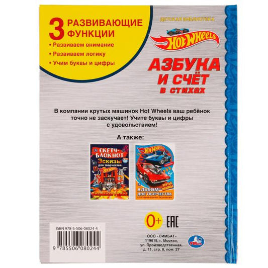 Азбука и счёт в стихах. Библиотека детского сада. Хот Вилс. 165х215 mm. 7БЦ. 48 pièces. Умка в кор.30шт